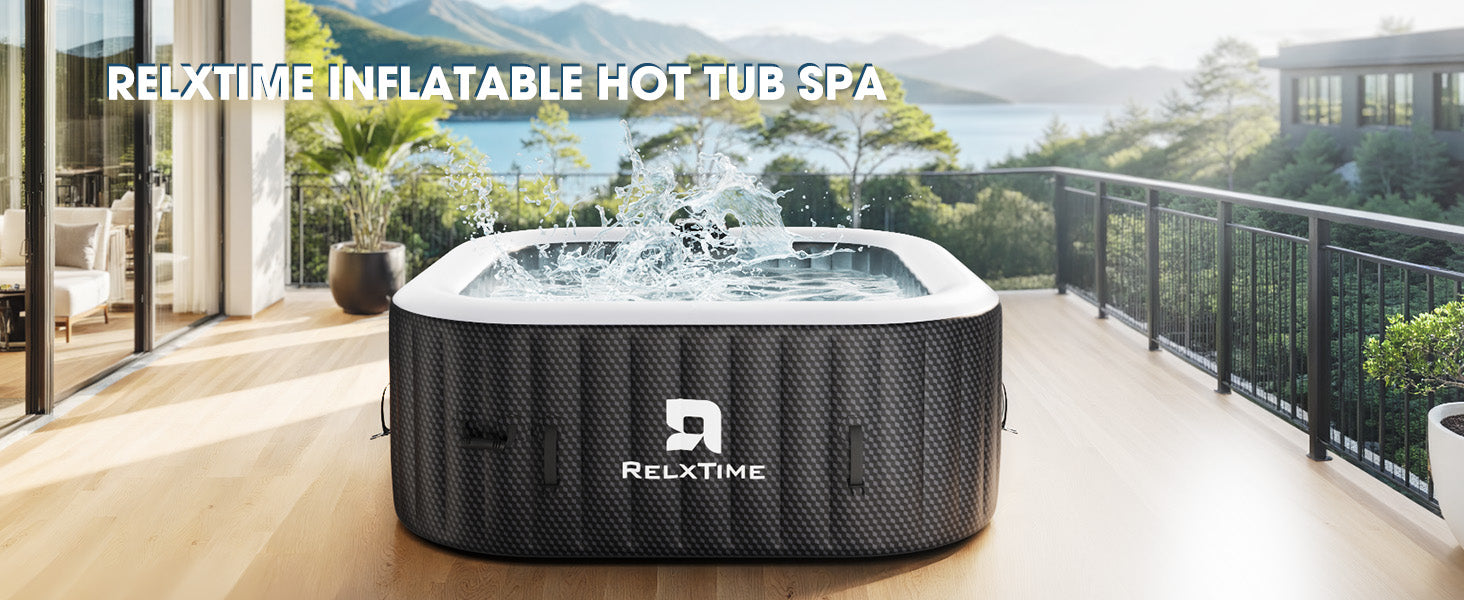 Relxtime 2-3 Person Square Inflatable Hot Tub 120 Massaging Air Jets Black Laminated Classic Spa - HS004