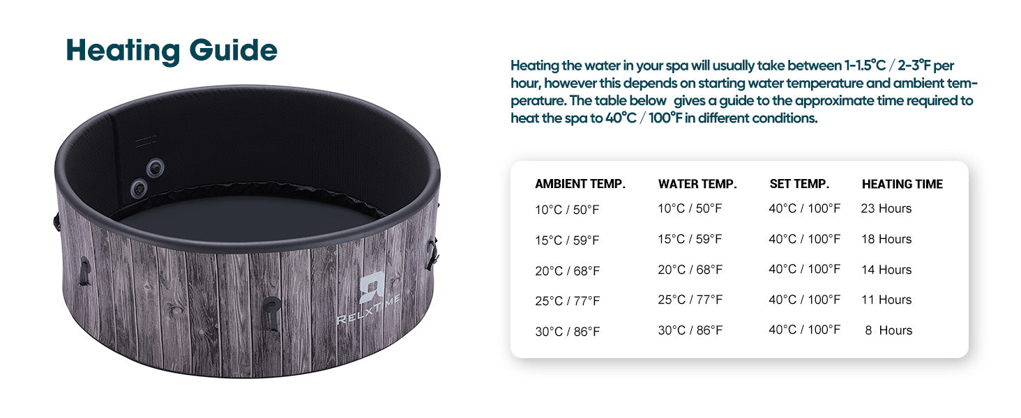 🌊ENJOY YOUR PORTABLE SPA YEAR-ROUND: Freeze protection automatic heating function prevents inner components from freezing, you can use your inflatable spa in colder temperatures (above 39.2 degrees Fahrenheit) during the fall or winter seasons to ensure long-lasting use. Do not install or leave the spa outside at a temperature lower than 39.2°F (4°C).
