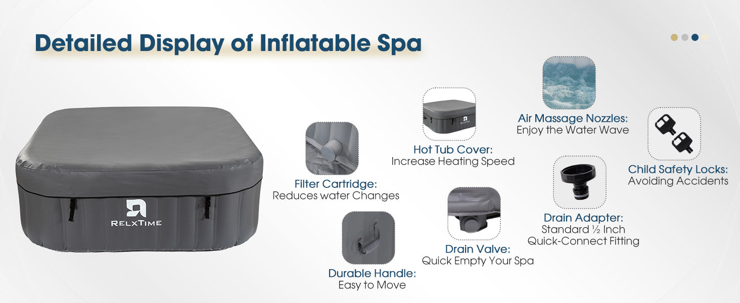 - Complete Accessory Set: Comes with a full set of essential accessories for hassle-free setup, maintenance, and storage, ensuring you can enjoy your spa experience right away.