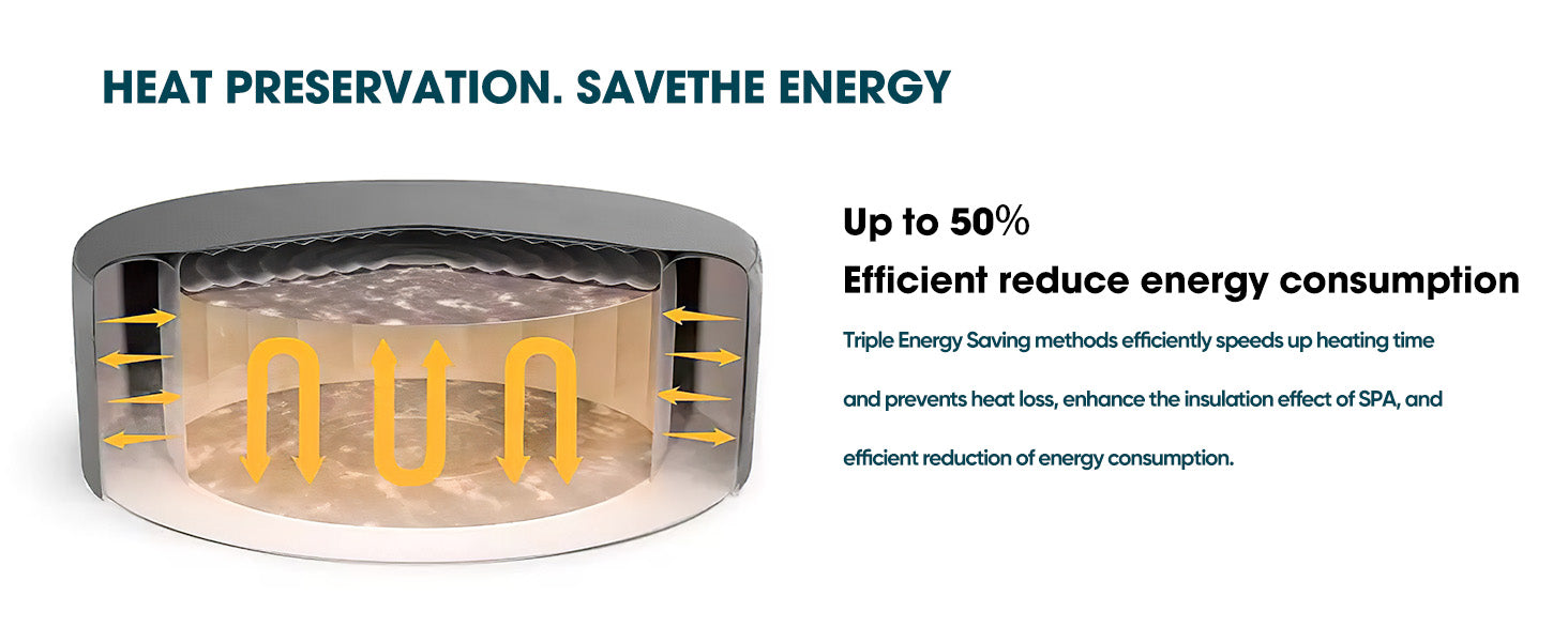 IMPROVES THE HEAT RETENTION: Crafted with high-quality insulated material, our inflatable hot tub thermal cover ensures optimal heat retention, reducing energy costs and maintaining your hot tub's temperature even in cold weather, saving you money on your energy bill all year round.